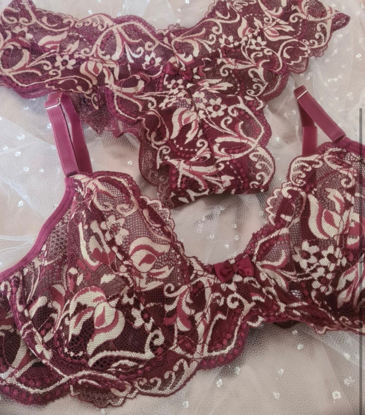 このワインレッドxゴールド ランジェリーセットで、特別なシーンから日常まで、上質な着心地とスタイルをお楽しみください!